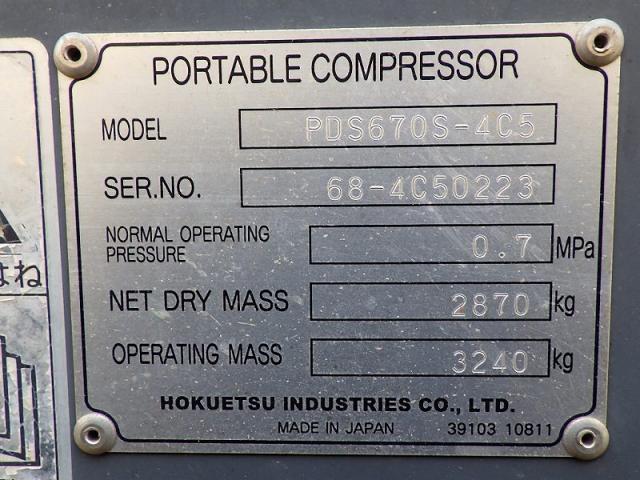 PDS670S-4C5 AIR COMPRESSOR, 2,715(h), WHEEL TYPE COMPRESSOR