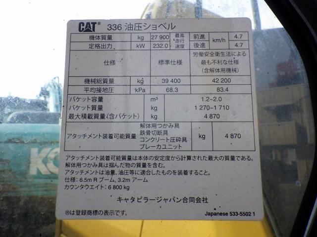 All scheduled maintenance CAT 336 HYDRUALIC EXCAVTOR, 6,567(h) 700G, MULTI, AC, EPA, 1.2m3