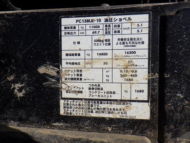 PC138US-10NM HYDRUALIC EXCAVATOR, 5345 HOUR, 600G, ROPS CAB, BLADE, PIPING, A/C