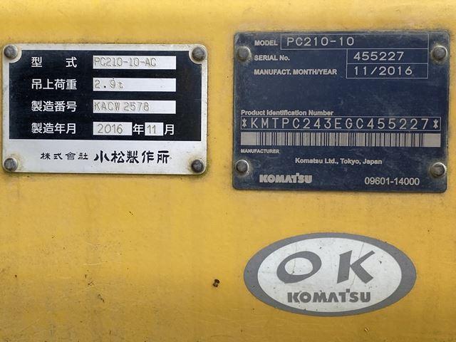All scheduled maintenance PC210-10 HYDRUALIC EXCAVATOR, 4869 HOUR, 600G, Piping, M/L, Arm Crane, A/C, w/Keys x3