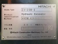 ZX125W-6 WHEEL EXCAVATOR, 662(H), ROPS CAB, 10.00-20, ComPIP, EPA, A/C, Multi Lever, Arm Crane, BL
